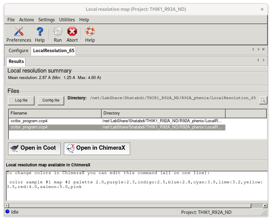 In the past, I've used chimerax to display local resolution on maps using the tools->volume data->surface color function. In a new map, I'm having difficulty with it. I'm attaching screenshots where the phenix local resolution job suggests the resolution range to be 1.27A - 4.6A range which is in agreement with cryosparc. When I load the cctbx_program.ccp4 file on chimerax, it is unable to color the surface and says the surface values are -0.067 - 0.107. Is there something I should be doing differently? Any suggestions would be deeply appreciated.