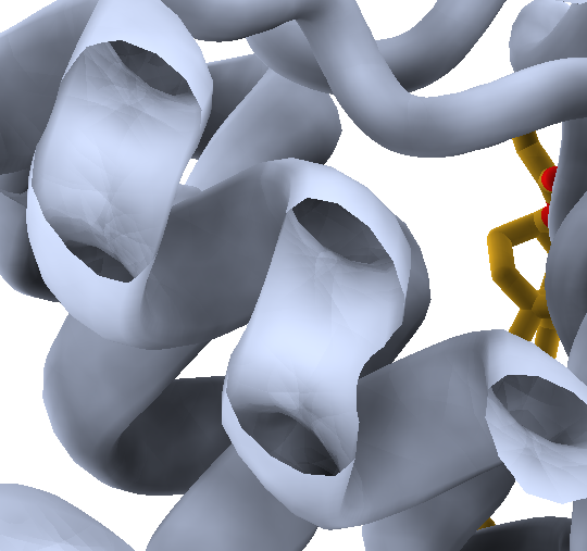 Hello, Recently I downloaded the new version of ChimeraX and noticed that in the ribbon style the helices now look hollow. In the older version of chimera, the helices were capped. Is there a way to cap the helices in the new version? Below is an example from the old version and the new version: Old: [cid:1fff36fe-586e-4307-98f3-a2f03b125fde] New: [cid:86e871a6-1c71-4488-9bc3-f1b209a57bec] Thank you for your help. Best, Eliane